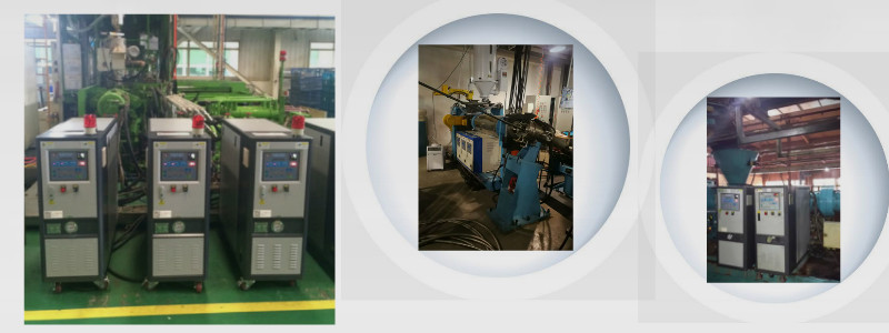 擠出機(jī)的規(guī)格不同,其控溫區(qū)段的數(shù)量也會(huì)不一樣,可根據(jù)不同的擠出機(jī),采取統(tǒng)一控溫或分段控溫,物料擠出前,模溫機(jī)需要將各被控區(qū)段的溫度升高至預(yù)設(shè)值,在物料擠出時(shí),由于機(jī)械能被大量轉(zhuǎn)化為熱能,模溫機(jī)又需要通過(guò)熱交換來(lái)將這些熱量帶走,達(dá)到溫度恒定的作用。所以模溫機(jī)在擠出設(shè)備上的應(yīng)用可以看作是一個(gè)擠出機(jī)主機(jī)啟動(dòng)前的預(yù)熱升溫和主機(jī)運(yùn)行過(guò)程中維持恒溫的過(guò)程。擠出分段控溫模溫機(jī)案例:客戶的擠出機(jī)每一個(gè)工藝段要求不同的溫度控制,推薦客戶使用雙回路模溫機(jī)或者多機(jī)一體模溫機(jī)來(lái)控制溫度,可以對(duì)擠出機(jī)設(shè)備中的各個(gè)工藝段同時(shí)進(jìn)行獨(dú)立的加熱和冷卻,從而達(dá)到一機(jī)多用的目的。如果對(duì)每一個(gè)工藝段使用一臺(tái)加熱設(shè)備進(jìn)行單獨(dú)的溫度控制,也能達(dá)到其技術(shù)要求,但是費(fèi)用高占地面積大。