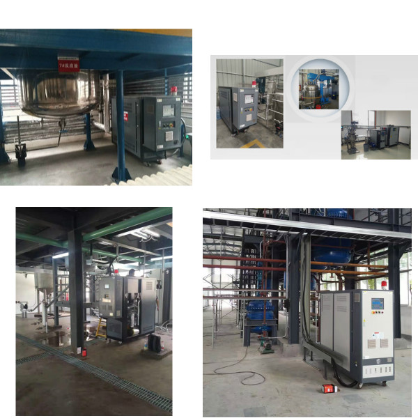 2.需要控溫的反應(yīng)釜都會有夾套或盤管之類的輔助裝置,利用這部分輔助裝置,利用管道將其與機組連接,使其形成一個閉式的循環(huán)系統(tǒng),傳熱媒介一直在管道與輔助裝置中循環(huán),將熱能傳遞給反應(yīng)釜,傳熱媒介一旦熱量降低之后,電加熱導(dǎo)熱油反應(yīng)釜內(nèi)部的發(fā)熱裝置會對其進行升溫,使其達到生產(chǎn)工藝要求。